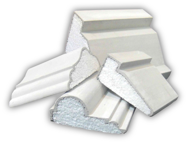 Maxi Propel Sdn Bhd manufacture a comprehensive range of polystyrene-concrete products which are used for interior and exterior decoration. The product types include cornice, dentil, motif, hood, sill, coping, keystone, arch and corbel. Image on the right shows the product properties which are polystyrene foam wrapped with fiberglass mesh and coating cement.