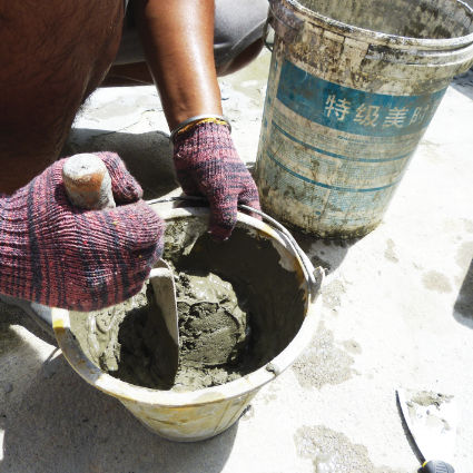 Apply the mixture to bonding surface up to average thickness of 4mm to 6mm. A wall surface which is even need thinner mixture than crooked surface wall.