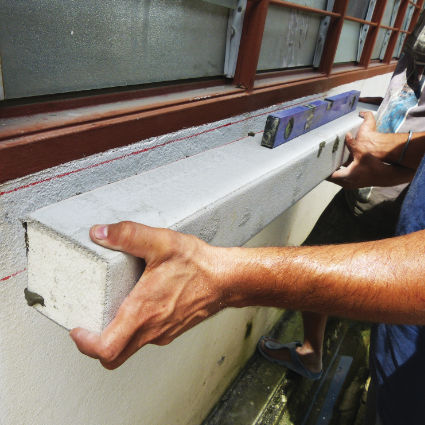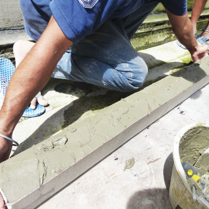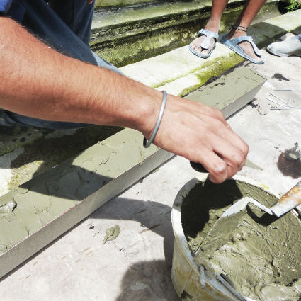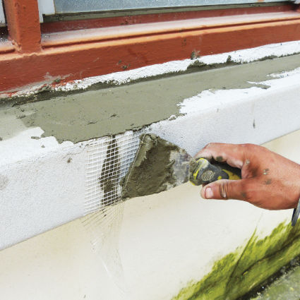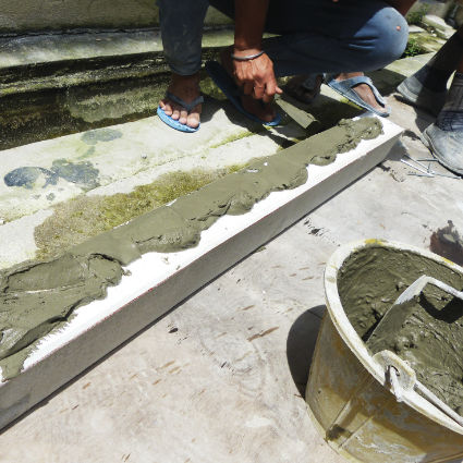 Cover up the fiberglass mesh by applying EPS bond and infill all the gap. Trim all the mixture infill on the gap by using sponge towel or brush.